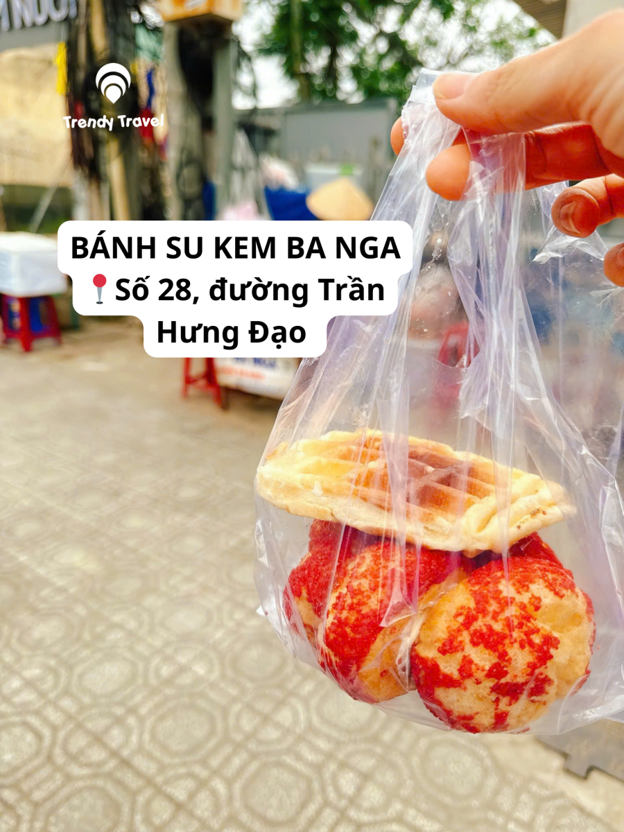 Không cần cửa hàng sang trọng, bánh su kem Bà Nga vẫn nức tiếng gần xa. Lớp vỏ mỏng, nhân kem bên trong đầy đặn, cắn một miếng là kem tràn ra ngoài, béo ngậy nhưng không hề ngấy.