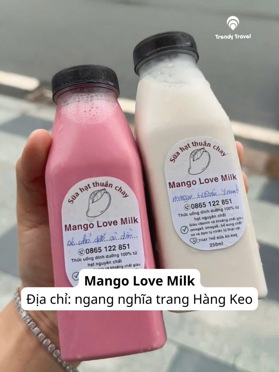 Dành cho những tâm hồn "eat clean" hoặc đơn giản là muốn đổi gió với thức uống bổ dưỡng. Mango Love Milk chuyên các dòng sữa hạt nguyên chất, giàu vitamin và khoáng chất.